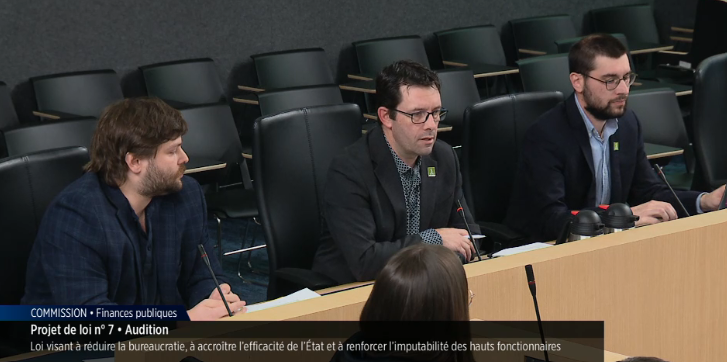 Le SFPQ a déposé un mémoire en commission parlementaire concernant le projet de Loi 7, Loi visant à réduire la bureaucratie, à accroître l’efficacité de l’État et à renforcer l’imputabilité des hauts fonctionnaires.